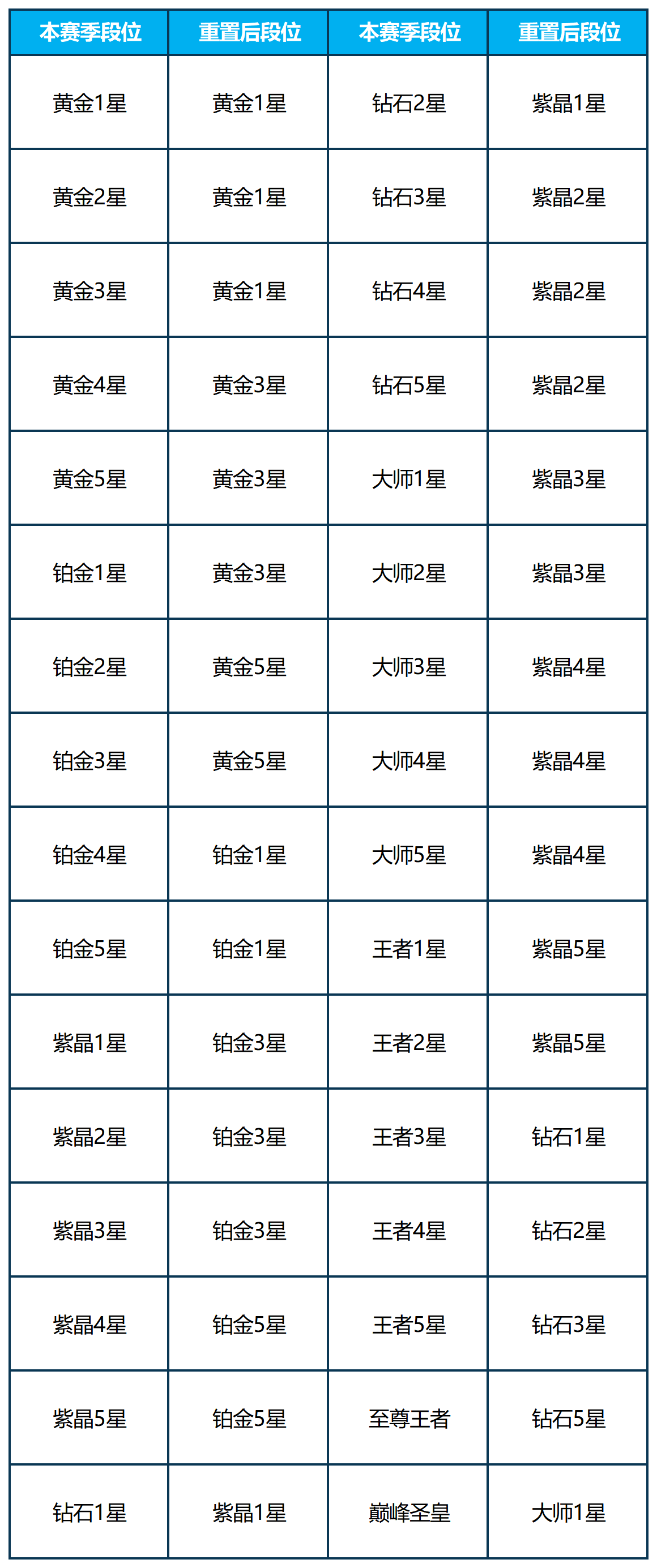 重置后的巅峰段位及赛季奖励发放情况如下所示: